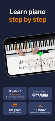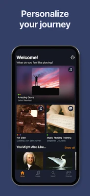 هل حلمت يوماً بعزف البيانو لكنك لم تجد نقطة البداية؟ يفتح لك flowkey أبواب عالم الموسيقى الواسع، مقدماً تجربة تعليمية فريدة مصممة لتناسب الجميع، من المبتدئين تماماً وصولاً إلى العازفين المتمرسين. انغمس في مكتبة غنية تضم آلاف المقطوعات البيانوية المنسقة بعناية فائقة، والتي تغطي كل الأنماط الموسيقية التي تفضلها: من كلاسيكيات الخالدة، إلى ألحان البوب العصرية، وصولاً إلى موسيقى الأفلام والتلفزيون الآسرة. مع مستويات صعوبة متنوعة لكل مقطوعة، ستجد دائماً تحدياً جديداً يثري رحلتك الموسيقية، سواء كنت تبدأ أولى خطواتك أو تسعى لصقل مهاراتك. كل ما تحتاجه هو تطبيق flowkey، جهازك المفضل (سواء كان هاتفاً، جهازاً لوحياً، أو حاسوباً محمولاً)، وآلة موسيقية – حيث يتوافق flowkey بسلاسة مع البيانو الصوتي والرقمي ولوحات المفاتيح.