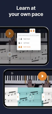 يُحوّل flowkey عملية تعلم البيانو إلى متعة حقيقية بفضل ميزاته التفاعلية الذكية التي تمنحك تغذية راجعة فورية. تخيل أنك تستطيع التركيز على أجزاء معينة من المقطوعة وتكرارها حتى تتقنها تماماً بفضل ميزة "التكرار"، أو أن تتدرب على كل يد بشكل منفصل لتعزيز استقلاليتها مع "اختيار اليد". ومع "وضع الانتظار" الذكي، يراقب flowkey عزفك وينتظر بصبر حتى تعزف النغمة أو الأكورد الصحيح، مما يوفر لك إرشاداً لحظياً لا يُقدّر بثمن، سواء عبر ميكروفون جهازك أو اتصال Bluetooth/MIDI المباشر. شاهد عازفي بيانو محترفين وهم يؤدون المقطوعات، مع إبراز النغمات التالية على لوحة المفاتيح وتوجيهات واضحة لوضع الأصابع. وحتى لو أردت العزف بحرية والتعبير عن نفسك، فإن "العزف الحر" يواكب أدائك حتى لو فاتتك بعض النغمات، محافظاً على تدفق الموسيقى. وإذا كنت من محبي النوتة التقليدية، يمكنك الاستمتاع بعرضها الكاملي بوضعية عمودية على جهازك اللوحي.